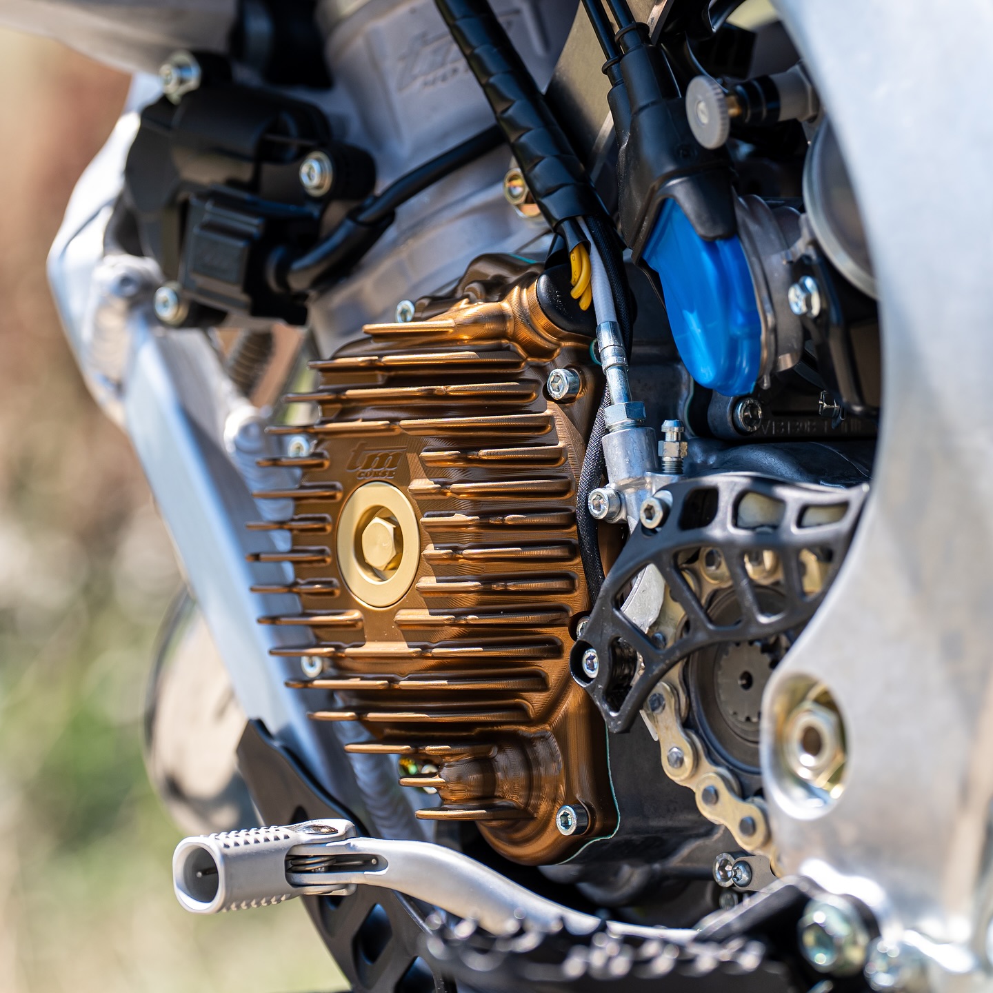 • CNC-gefräste und bronze-eloxierte Kupplungs- und Zündungsdeckel für höhere Schlagfestigkeit und markanten Racing-Look