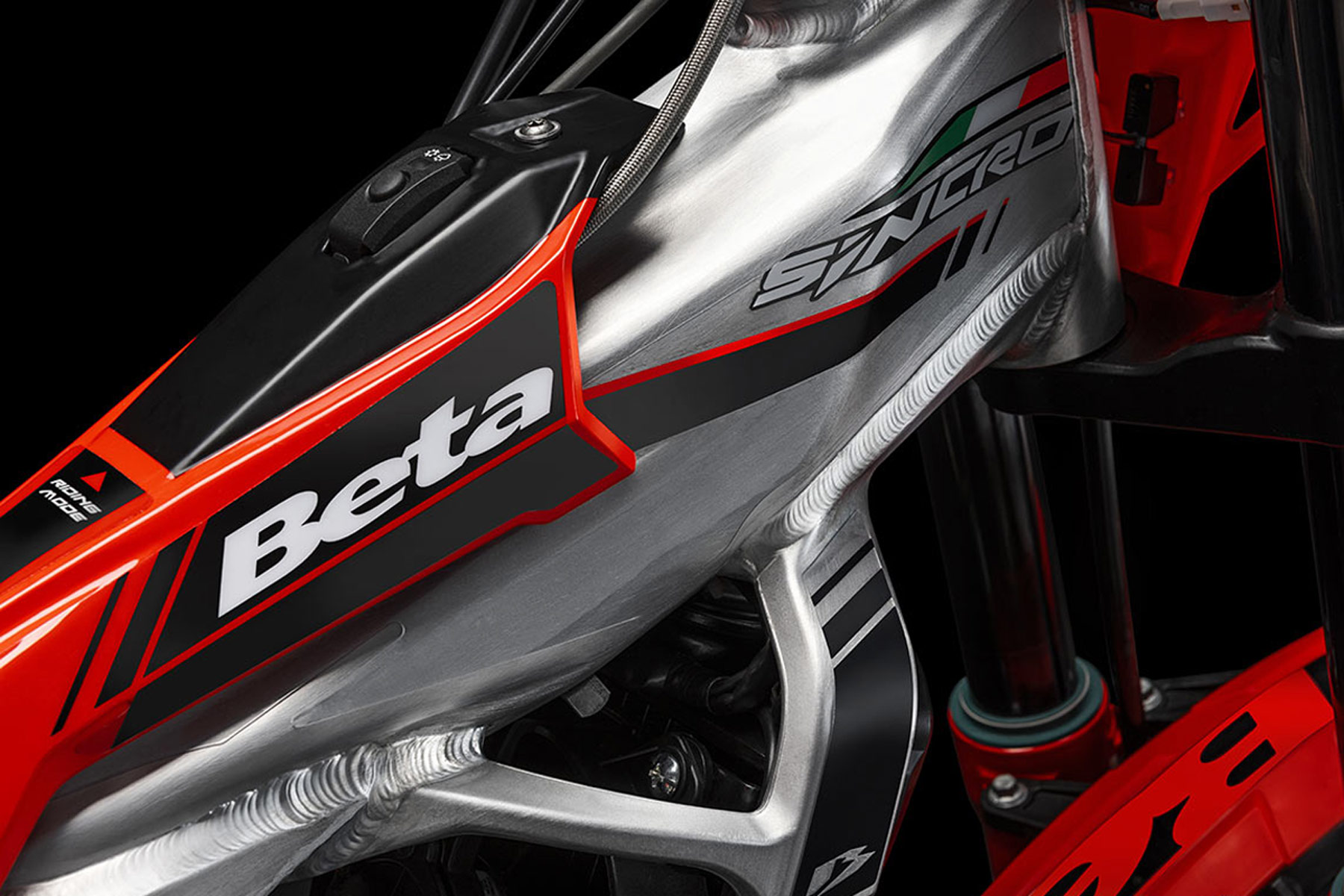 Sincro 300 2T SS: Diese Version, wobei SS für „Super Smooth“ steht, ist das querliegende Motorrad der 2T-Reihe. Ein extrem spaßiges Produkt, das die Qualitäten des größeren 300-ccm-Beta-Motors beibehält, diese aber im unteren bis mittleren Drehzahlbereich im Vergleich zur Standardversion sanfter gestaltet. Zusammen mit anderen kleinen Details ist dies ein noch spaßigeres und einfacher zu fahrendes Produkt für selbst weniger erfahrene Fahrer.